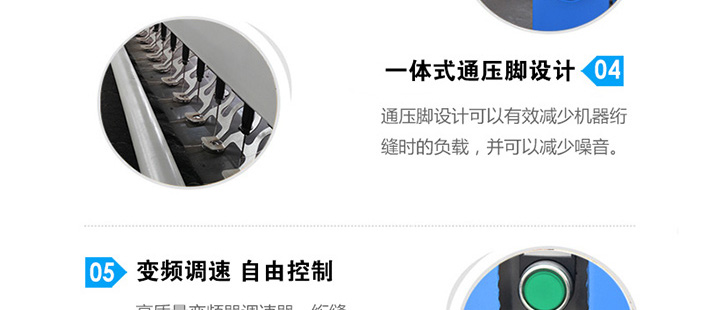 產品簡介:本機所縫的鎖式針跡,具有線跡美觀、富有彈性、線鏈牢固、針距均勻等優點。把易 損易壞的部件改換耐磨材料,克服不易調整、維修的缺點,增加電控系統,使機器更好操 作等特點。