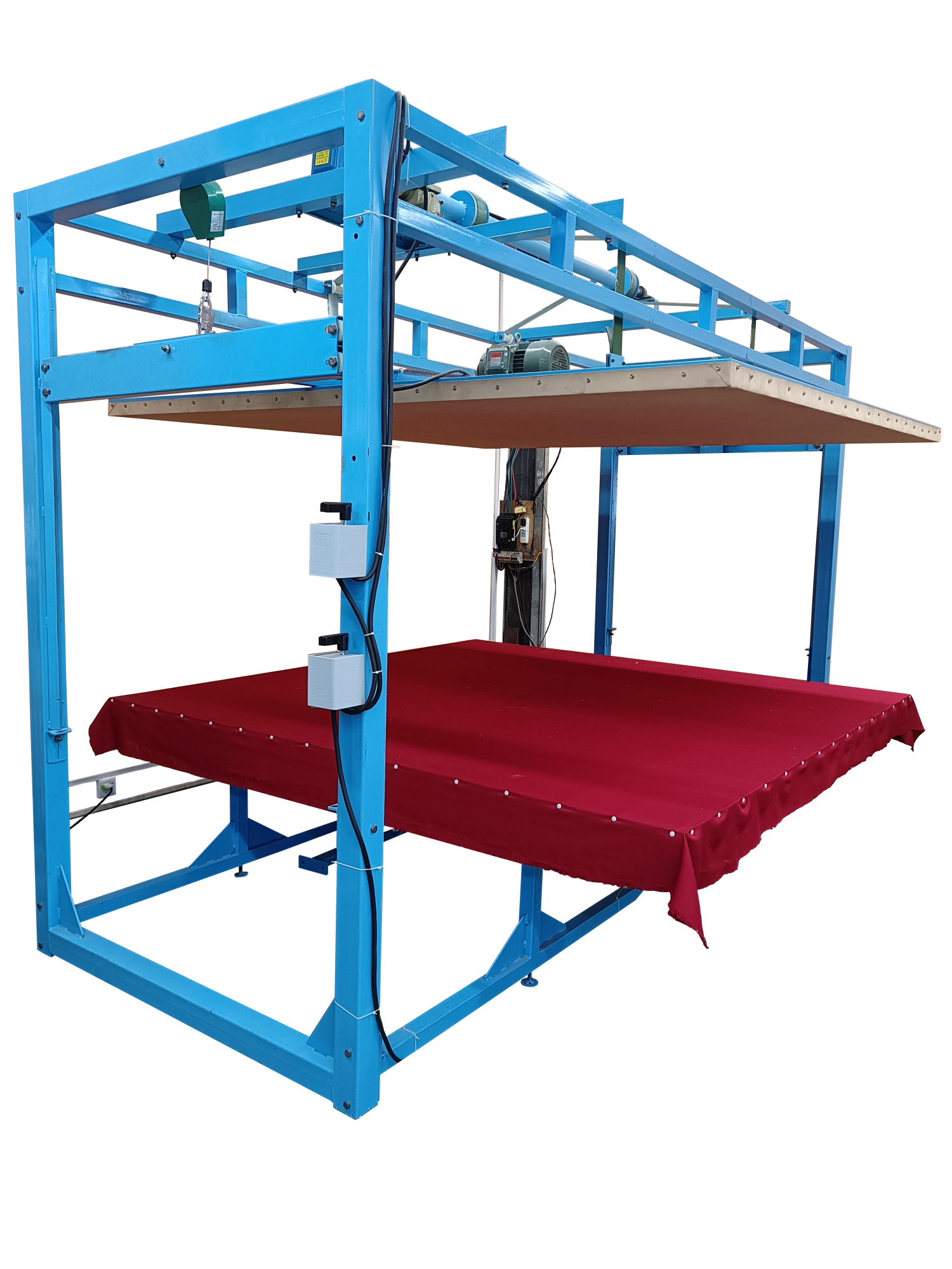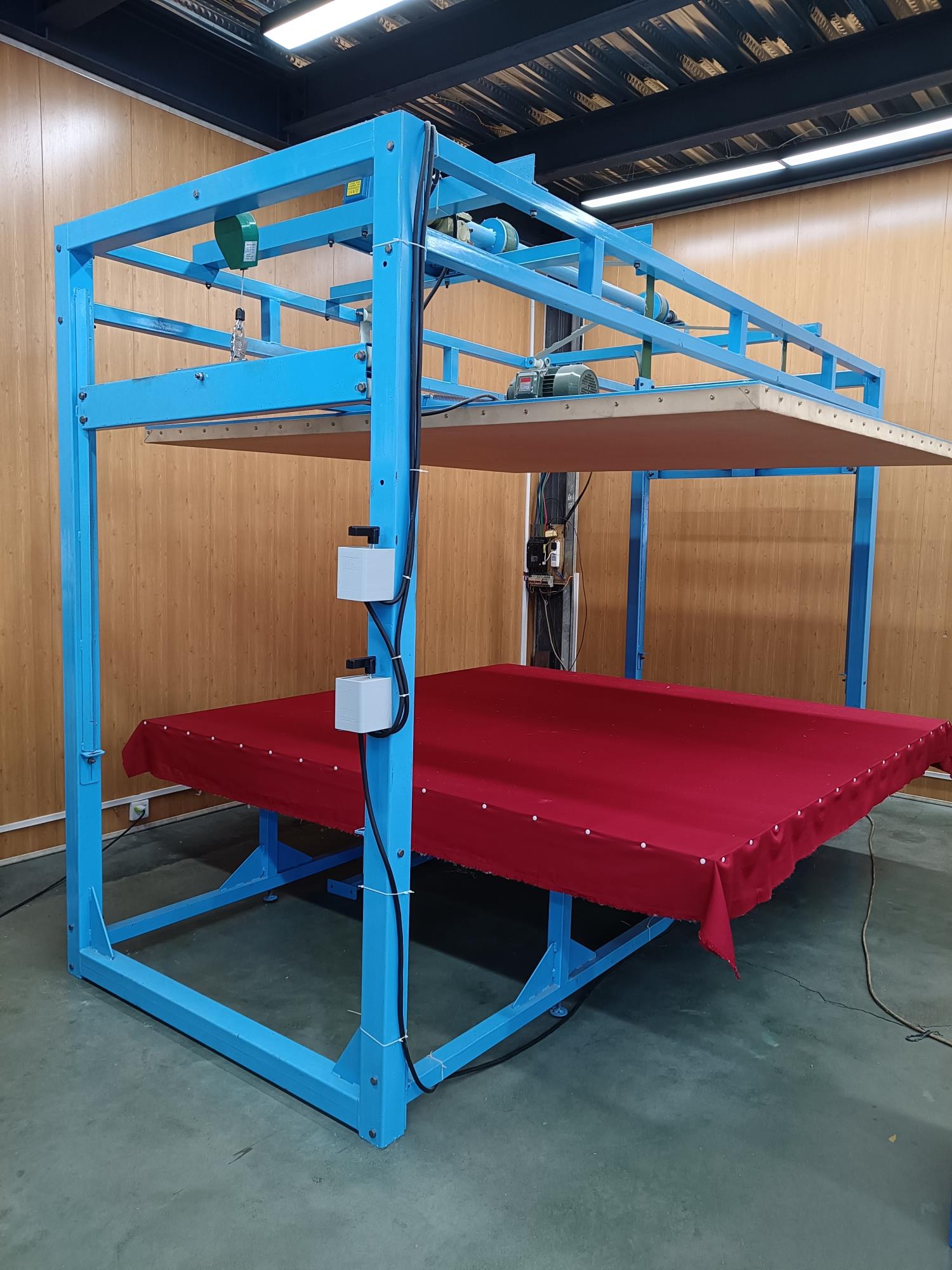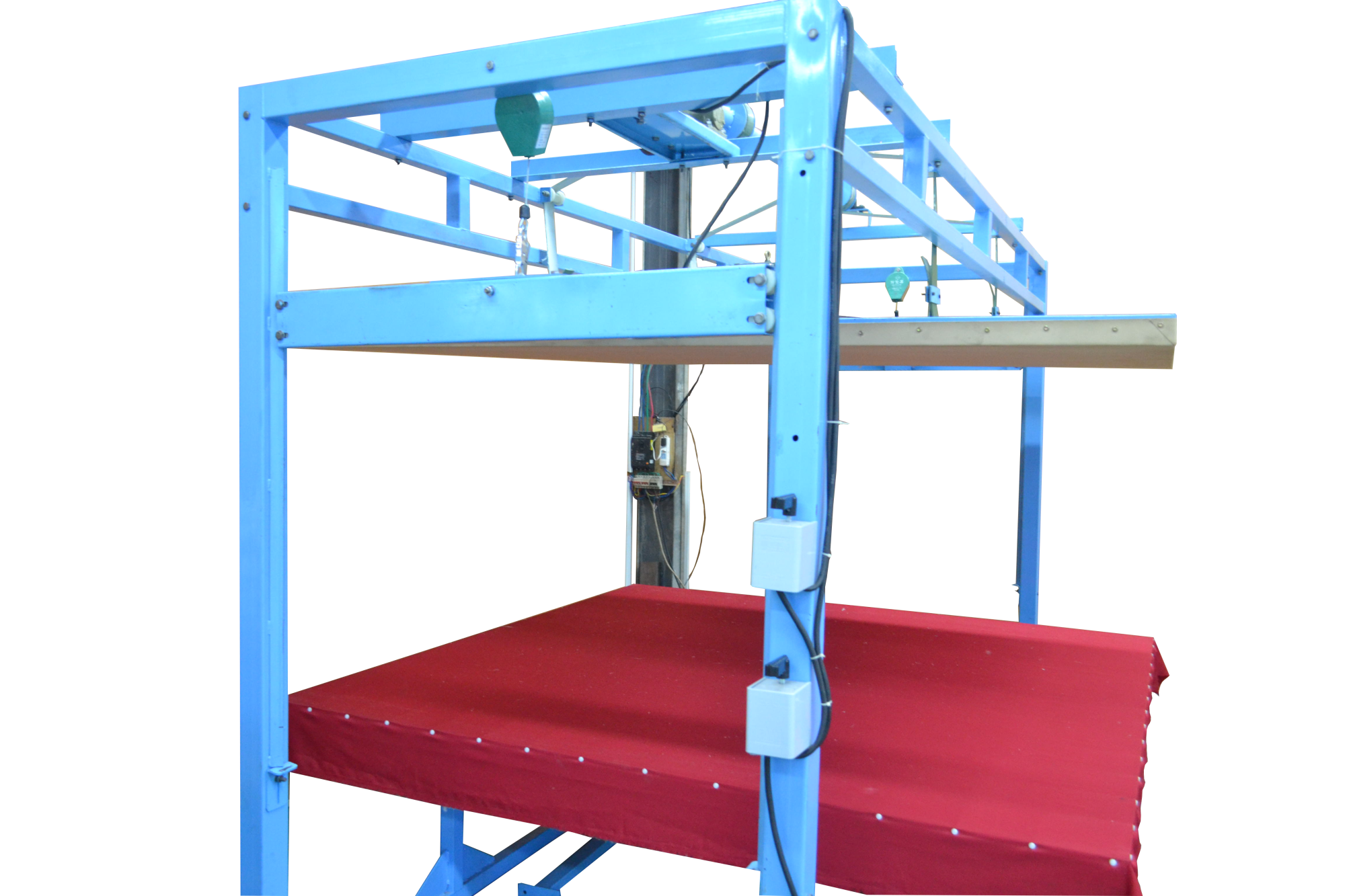 本全自動揉棉機為徽星機械機械制造有限公司研發(fā)新型產品,該全自動揉棉機由傳統(tǒng)的上傳動方式,改為下傳動方式。上傳動全自動揉棉機的主要缺點是噪音高,振動副度比較大,安裝時要配合地錨來固定機器,本新型機器(全自動揉棉機)的下傳動裝置改變了以上的缺點。新一代全自動揉棉機(揉磨機)操作方便,易于使用。適用于棉胎成型加工廠、踏花被廠、棉胎加工個體戶使用;全自動揉棉機揉制的棉胎(絮)平整、美觀、結實、耐用,全自動揉棉機(揉磨機)使傳統(tǒng)的人工強體力勞動變?yōu)楸鞠盗袡C器的自動化機械作業(yè),特別是自動升降系統(tǒng)和定時揉棉設定,大大減輕了工人的勞動強度、提高了勞動效率。并且一人可看管多機,效益非常顯著。全自動揉棉機其原理是電機帶動偏心運轉使上揉板運動,將棉鋪磨平、壓緊,使棉纖維與網(wǎng)線結合,成型棉胎。
