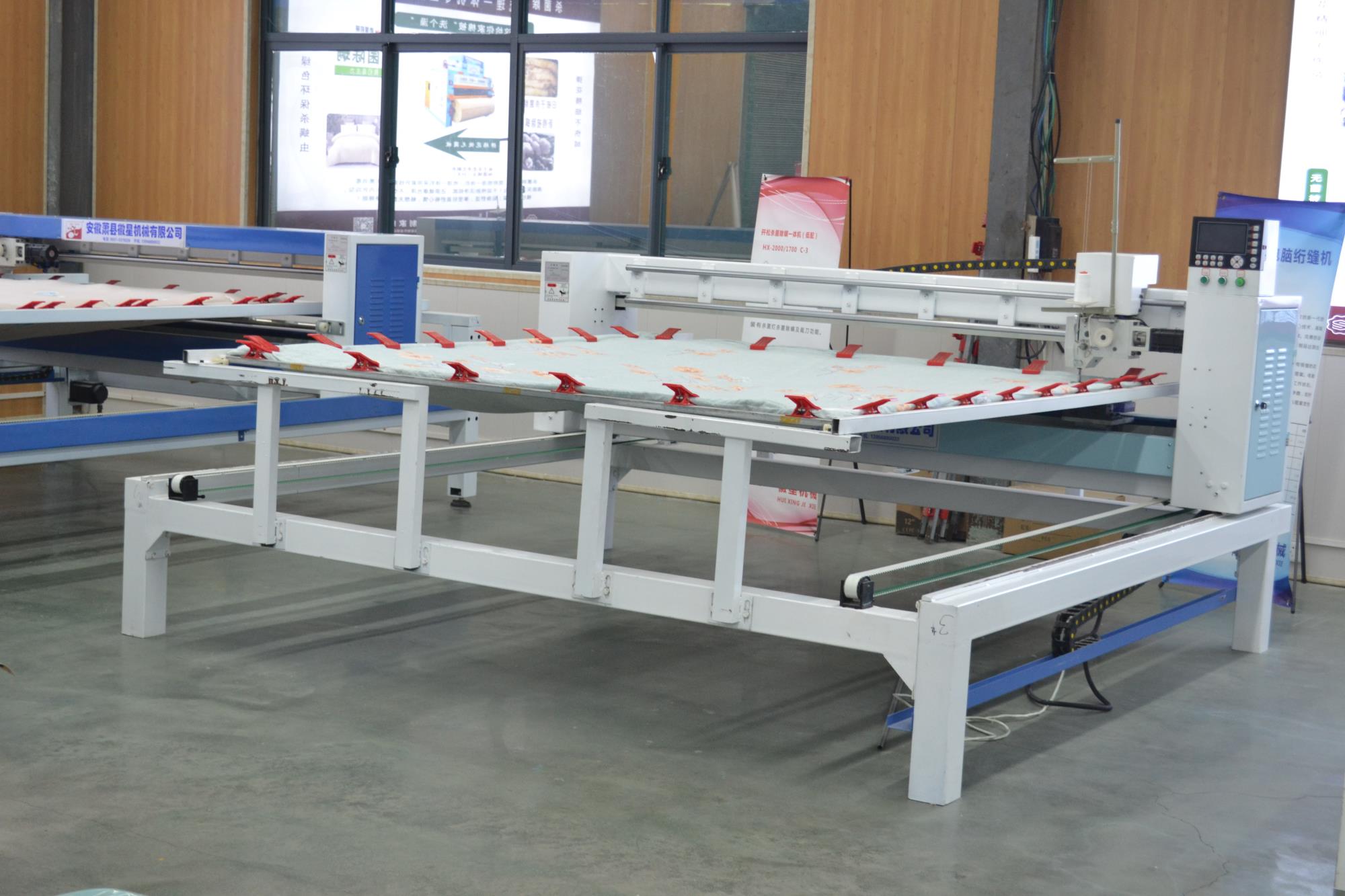 整機運行穩定,噪音小,傳動結構壽命長,斷線檢查,面線段線自動停機,工作燈,穿線更方便,絎縫精度高,噪音接近無聲,液晶顯示器,小控制柜,占地小;配備新一代絎縫機專用電腦,內部實時檢測,確保不拉壞被子,電腦、電機出現故障自動停機,同時電腦畫面顯示故障內容,同時自帶幾百種常用花型。